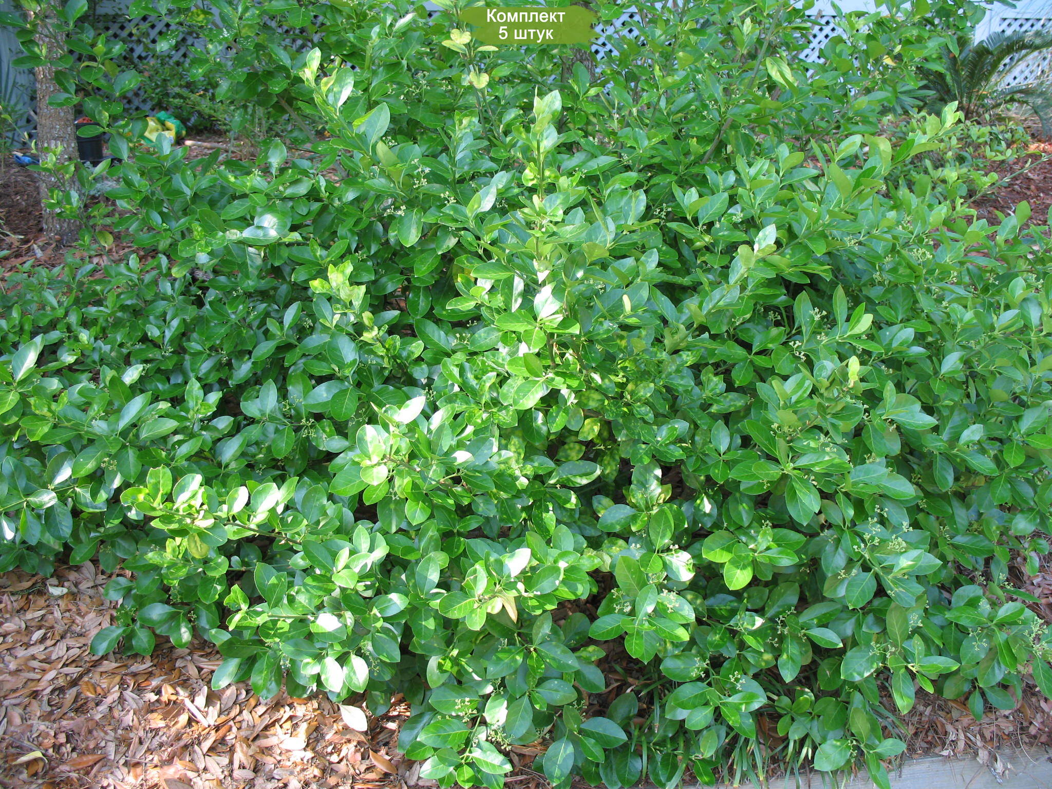 - Листва: Мелкие, глянцевые листья насыщенного зеленого цвета сохраняют свою декоративность круглый год.